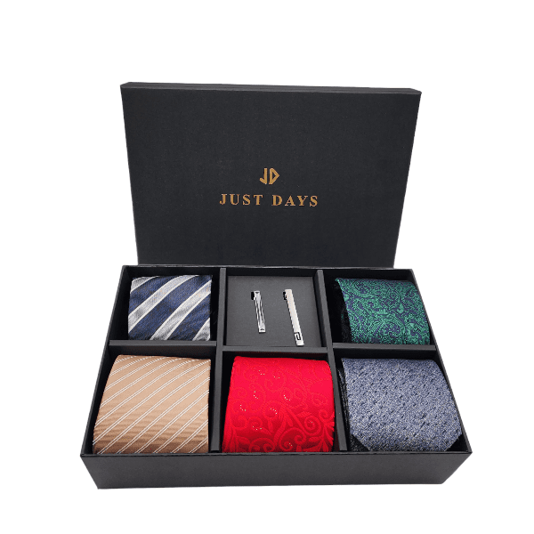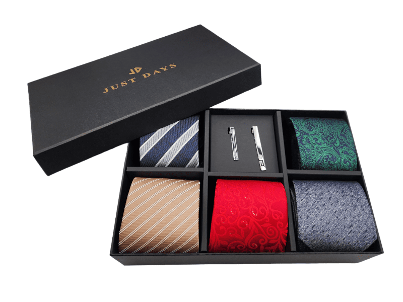 It is a great value pack for your loved one. Including 5 different colors and designs neckties with two tie pins. Ideally for birthday gift, Vallentine’s Day gift or Father’s Day gift.